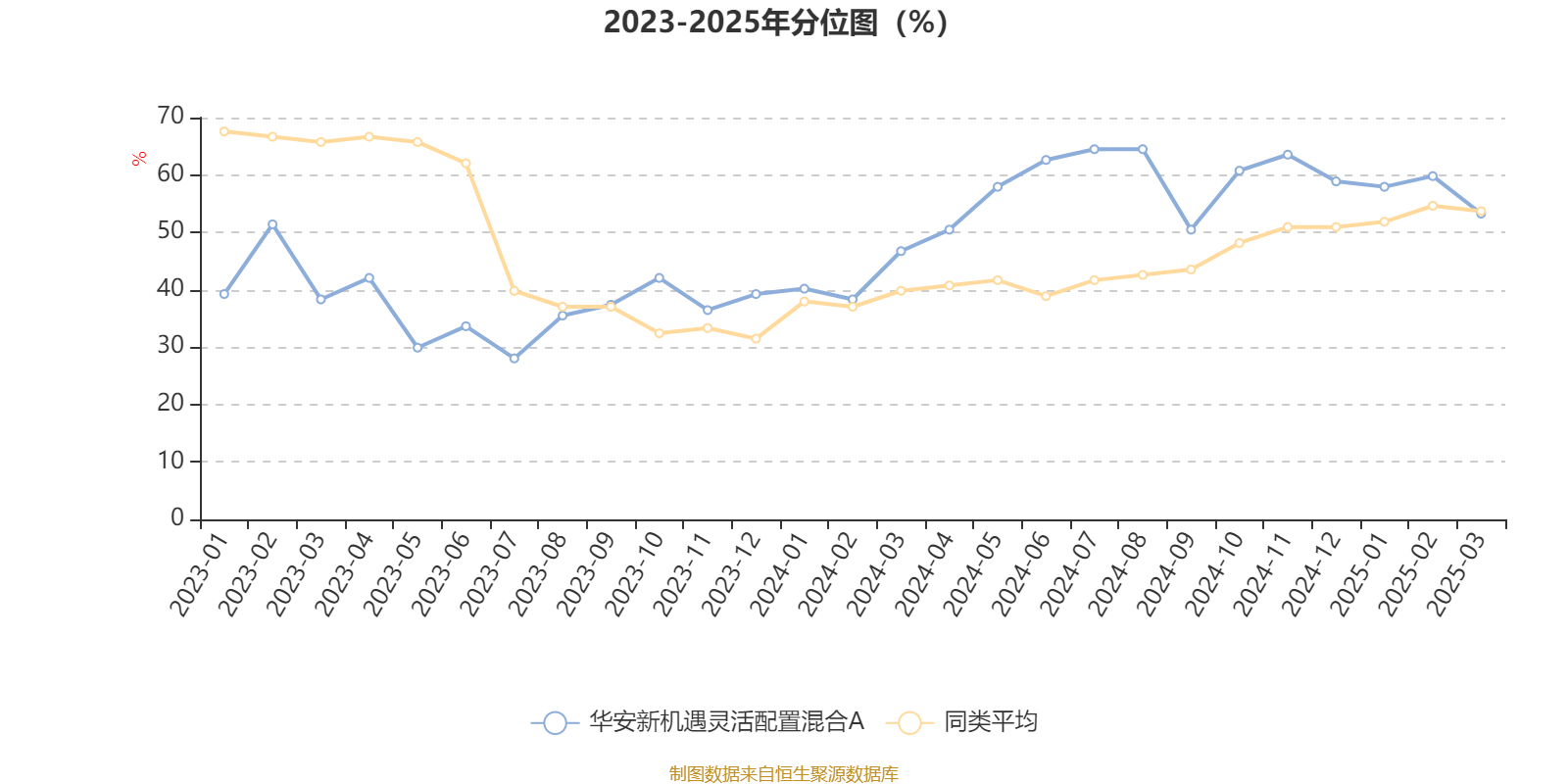 通过所选区间该基金净值增长率分位图,可以观察该基金与同类基金业绩比较情况。图为坐标原点到区间内某时点的净值增长率在同类基金中的分位数。